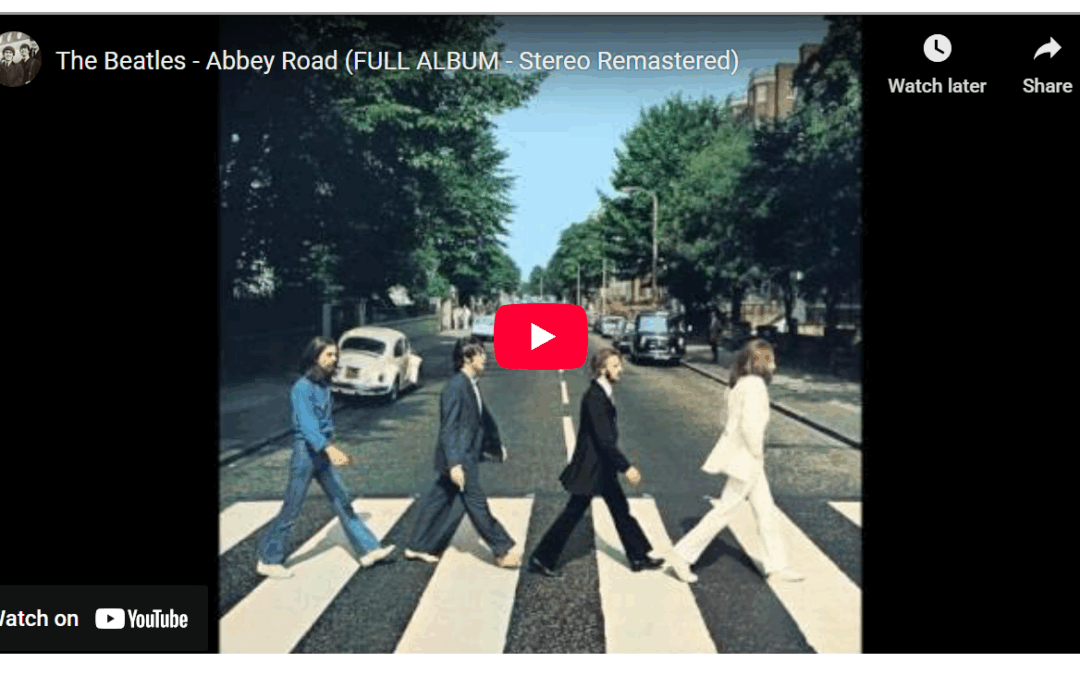 I have attached here a link to the entire abbey road album in one video. I like this link because to understand how the albym moves you through styles and emotions it is important to listen to the whole thing and experience the transitions between songs.